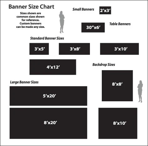 Typical banner sizes fall within the 12” to 240” inch range (1ft – 20ft) and those are the range of banners listed on this page. If you would like irregular sizes beyond this range, they can be accommodated for on an individual basis, so please contact us for advanced custom banners. There are limitless banner shapes if you want something different from a standard rectangle, and banners are very easy for customers to cut themselves. We do recommend you notify us if you want a custom shaped banners, since we have professional cutting tools to get the job done. We can help you determine the best sizing for whatever project you have since we have design and installation consultants that can work with your ideas to match up what size and number of banners you need to get the job done.